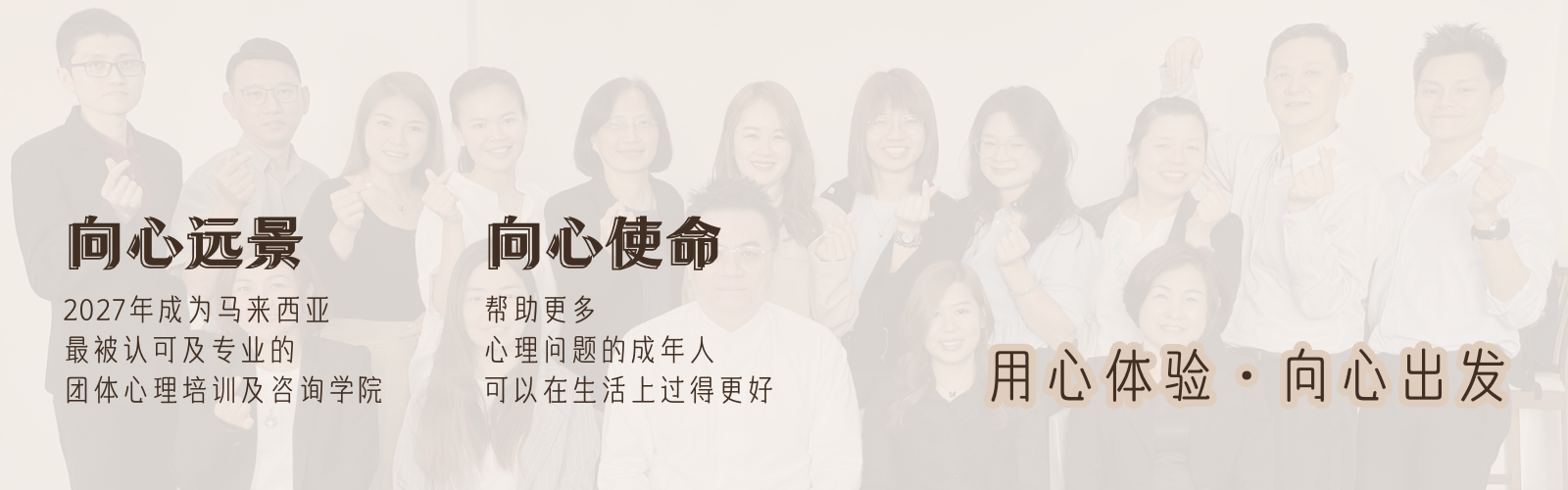 向心学院成立于2016年,致力于提高大众对心理学的正确认识、普及化心理学以及推广亚隆模式存在主义团体体验,,是马来西亚首家中文心理教育培训机构。向心心理科普人群覆盖逾万,遍布全国各地,成就了大马人际取向团体咨询领域的领导品牌。秉持“用心体验·向心出发”的理念,向心专注于潜意识探索、深度潜意识团体体验、亚隆模式存在主义、团体人才的培养及心理科普。
